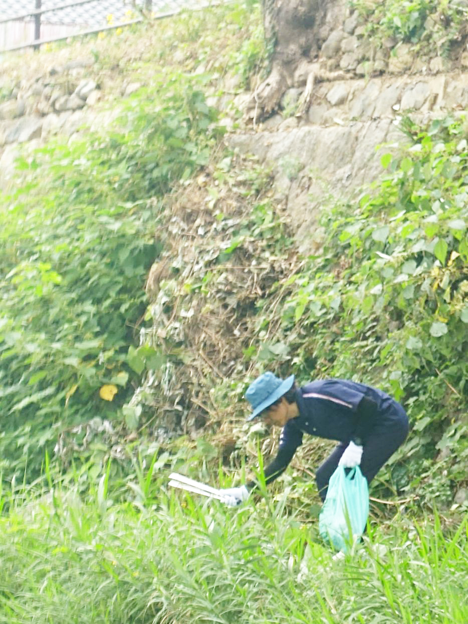 大蔵川の河川敷を歩いて、トング片手にごみ拾い😊