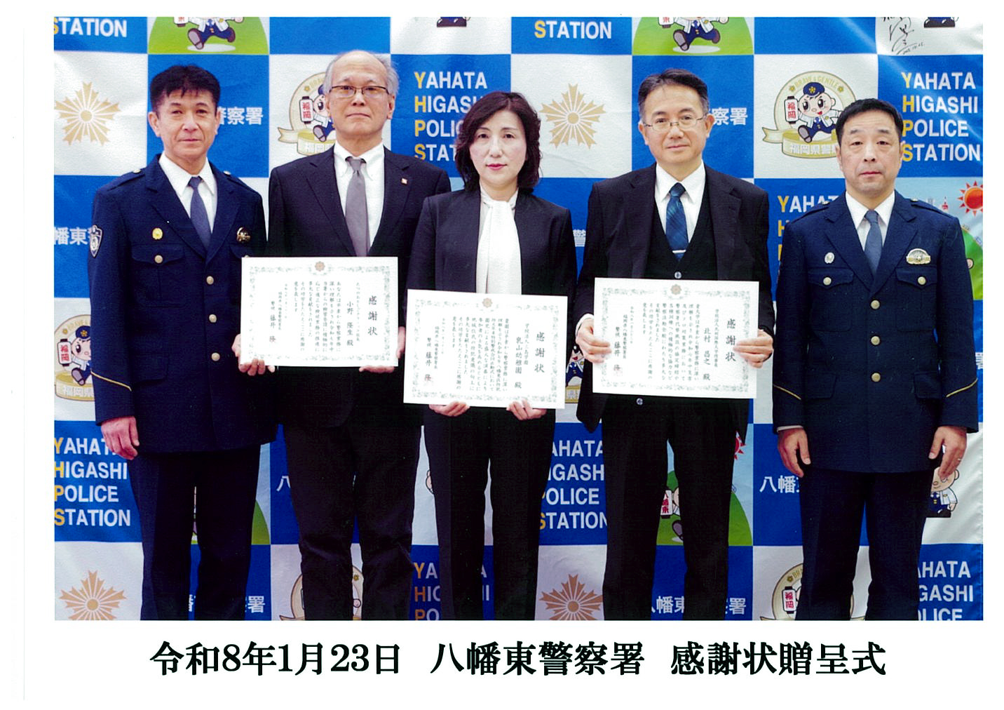 八幡東警察署にて感謝状贈呈式が行われました。